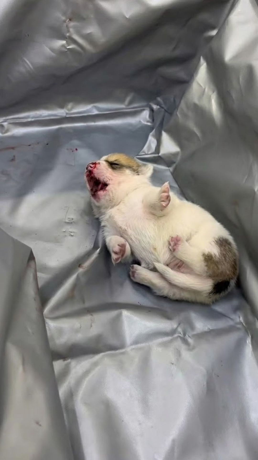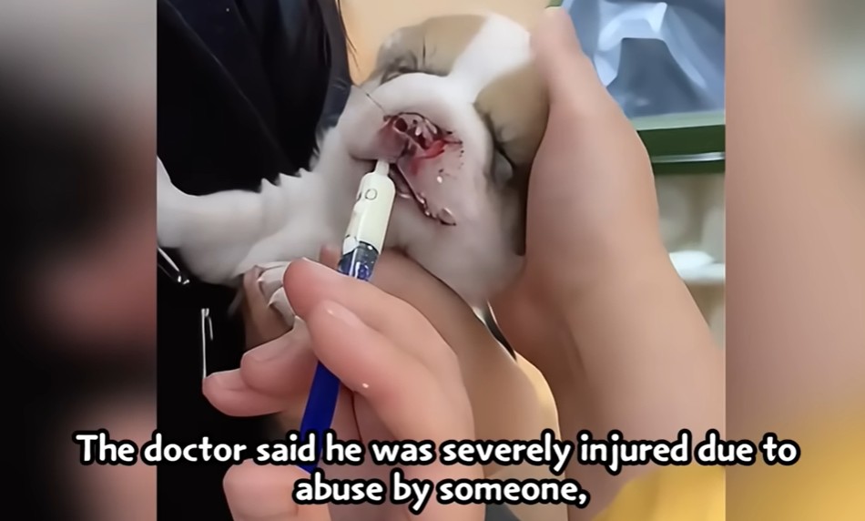 The doctor’s examination confirmed this was no accident. The helpless, unweaned puppy had been intentionally and forcefully thrown against the hard ground. The impact had fractured his delicate jaw, caused severe blood accumulation in his chest, and left him bleeding from his nose and mouth.