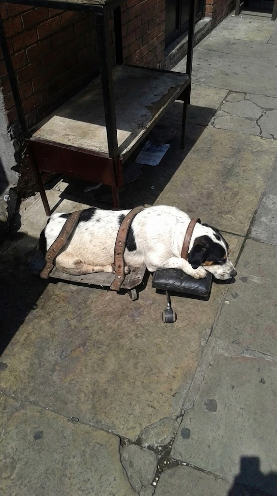 Cabezoncito, a gentle street dog, was strapped to a crude, wheeled contraption. The straps were pulled so tight across his body that he couldn’t move. He couldn’t pace. He couldn’t even lift his head. He simply lay there in a forced, agonizing silence, his eyes fixed on the ground as a sea of strangers passed him by.