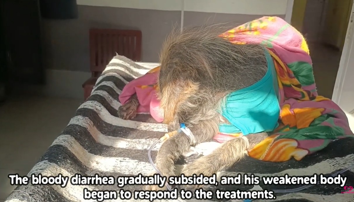 The battle proved to be an arduous one. Trumpad suffered through bloody diarrhea, a sign of how deeply his internal systems had been compromised. For the first two days, he refused to eat, his body too exhausted to even process nourishment. Yet, the rescue team stayed by his side around the clock, meticulously monitoring his fragile condition and providing supportive care.
