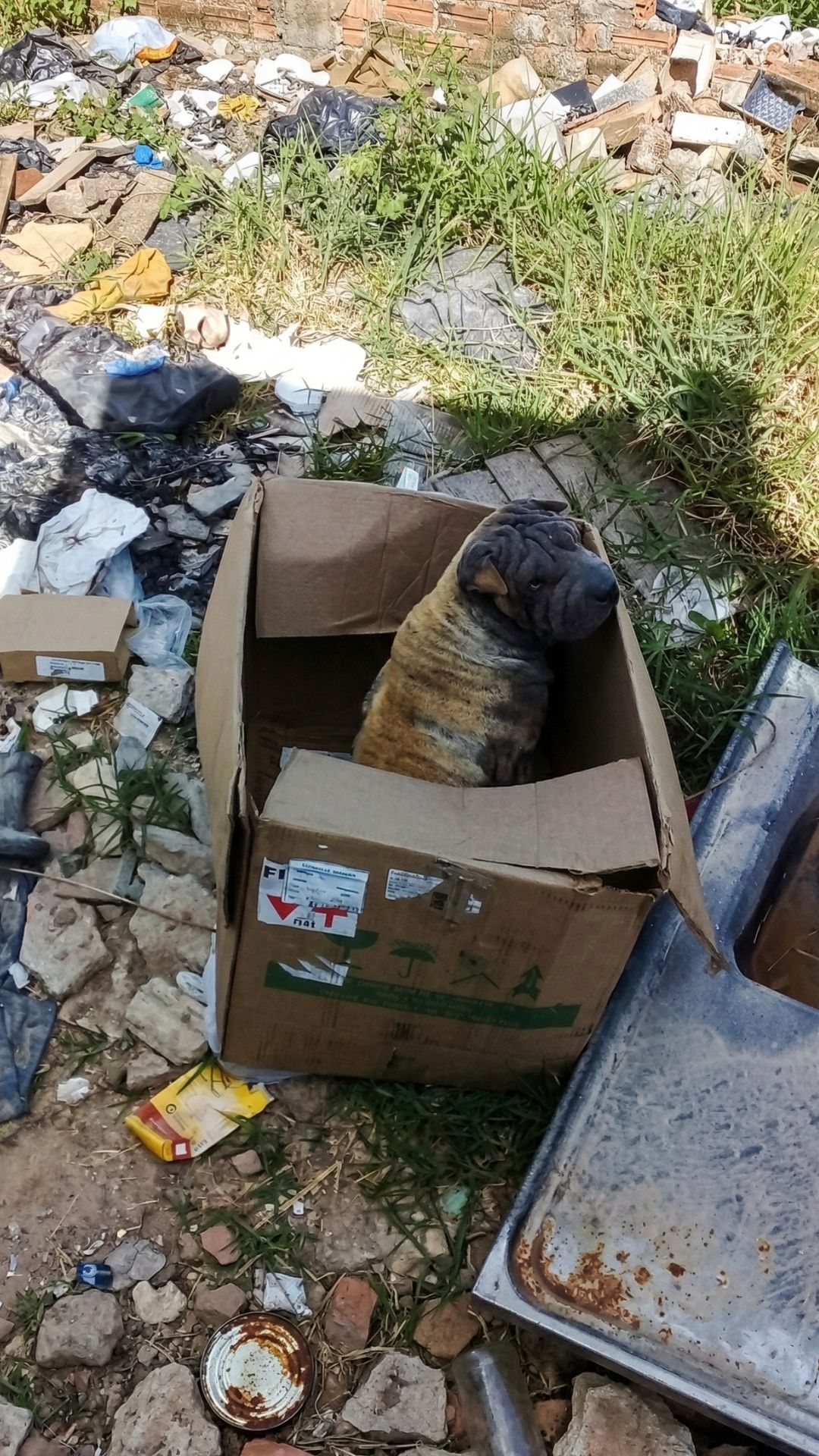 She wasn’t just a dog; she was a Shar Pei who had once been majestic, now reduced to a skeletal frame shivering in the dirt. Her owner had driven to this desolate place, placed the box on the ground, and simply drove away.