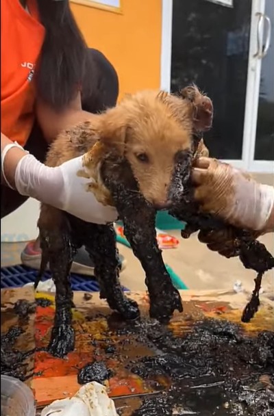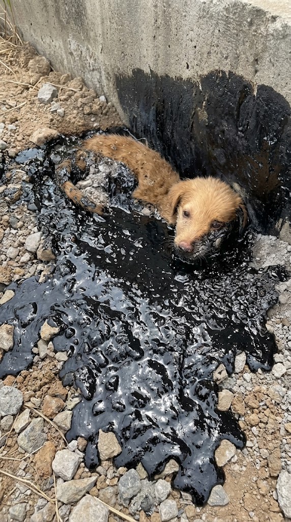 Looking at Trio, our hearts sank. How do you save a soul when his entire body is stiff, glued to a grave of tar? If we pulled too hard, we would tear his skin. If we waited too long, the heat and dehydration would claim him. The air was thick with the smell of chemicals and the desperate, shallow breaths of a puppy who had given up on crying for help.