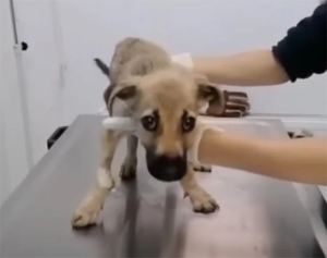 As the veterinarians began their examination, the true scale of Merve’s ordeal was revealed. He was a map of pain. His skin was raw and damaged in multiple places, stripped of its protection. A deep, jagged wound around his neck required surgical precision to stabilize, and one of his legs bore an open injury so severe that even a slight shift in position brought a wince of agony.
