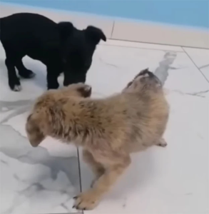 From that day on, his progress accelerated. Walking turned into exploring the hallways. Exploring turned into the frantic, clumsy joy of play. Merve began to interact with other dogs, learning how to run, how to “talk,” and how to simply exist in a world that was finally safe.
