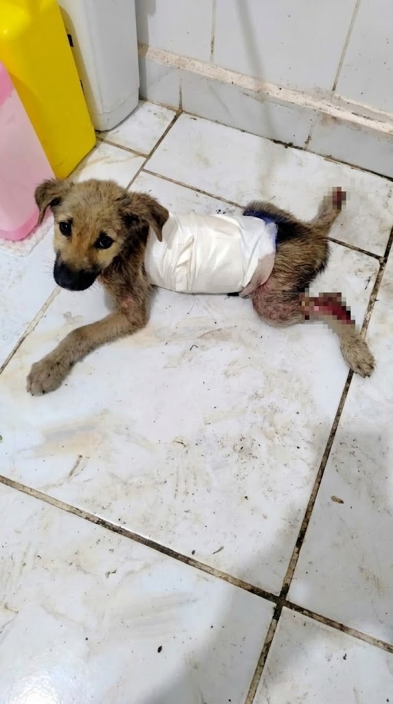 He lay on the cold floor, a small, battered figure marked by a level of hardship that no creature—especially one so young—should ever have to endure. There was no owner to hold his paw, no medical history to guide the doctors, and no explanation for the wreckage of his tiny body. All that was certain was the ticking clock: every second mattered, and the trauma he had survived had already pushed him to the very edge of existence.