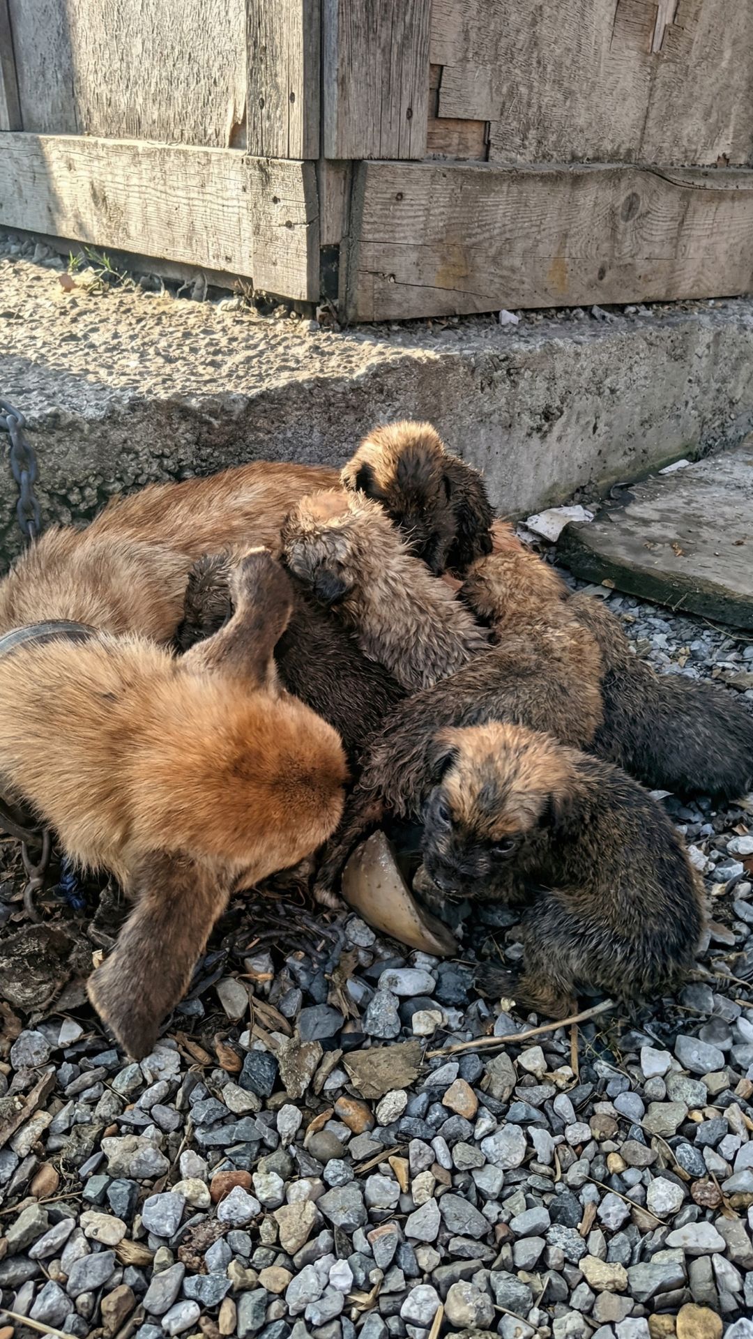 The mother dog had been abandoned in the worst possible way. Chained to a fixed point, she was forced to watch her puppies weaken day by day, unable to move even an inch to find them sustenance.