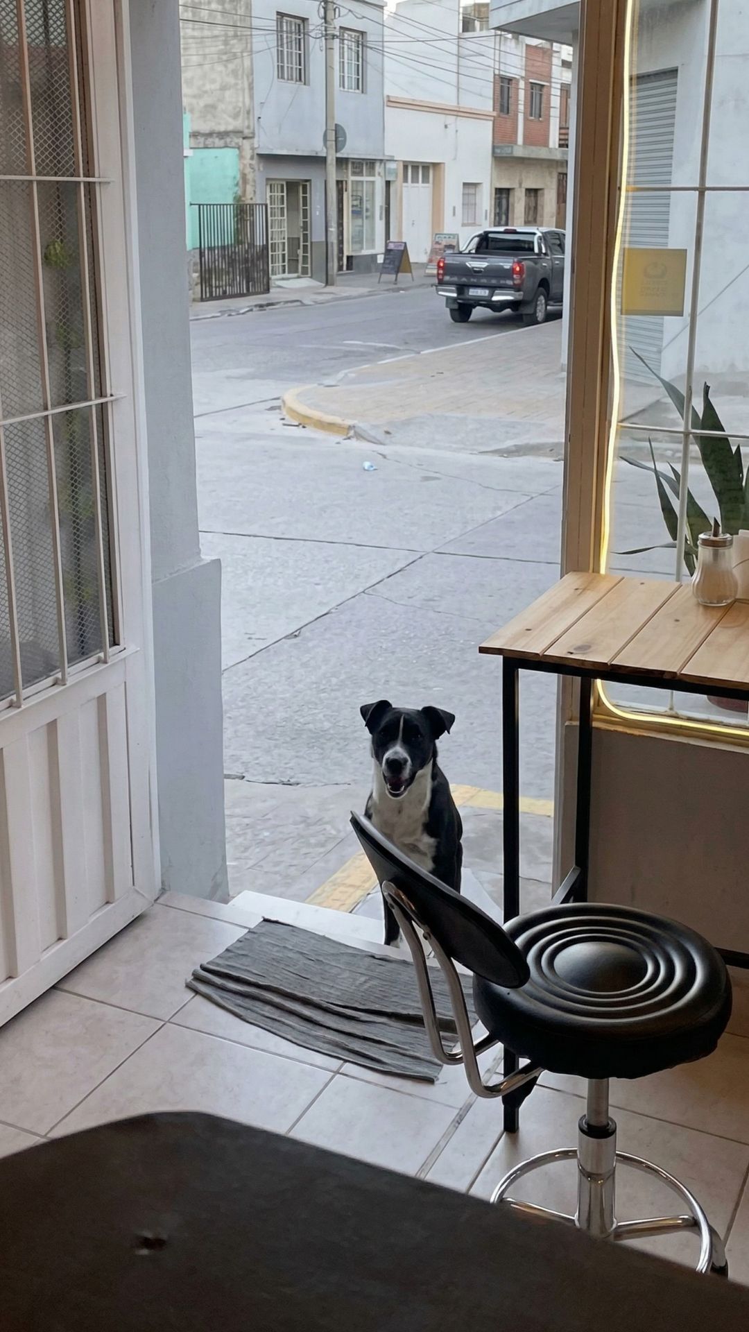 He doesn’t bark for attention or cause a scene. He simply exists in that space, a silent regular who has made the sidewalk his own personal VIP lounge.