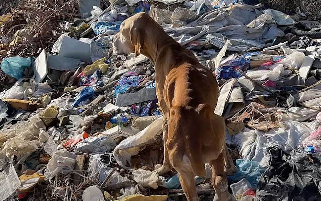 On a day that began like any other, a laborer working near the edge of a vast garbage dump noticed a shape that felt out of place among the ruins of the city. Amid the piles of discarded debris and the broken remnants of modern life, sat a dog whose presence demanded attention. He was hauntingly thin, his body a map of long-term neglect, but it was his eyes that truly stopped the man in his tracks. They weren’t wild with aggression; they held a quiet, weary plea—a silent request for someone to finally acknowledge he was still alive.