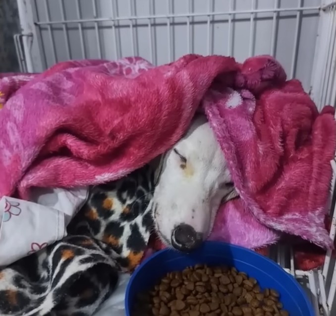 Joel was found in a state that would break the strongest of hearts. He hadn’t just been abandoned; he had been stuffed into a bag and left next to a trash bin, as if his life were nothing more than refuse. When a passerby heard his faint, desperate moans and called for help, rescuers found a dog that was little more than “skin and bones.” Joel was so weak he couldn’t even eat, and his body was wracked with shivers as he struggled to maintain his temperature.
