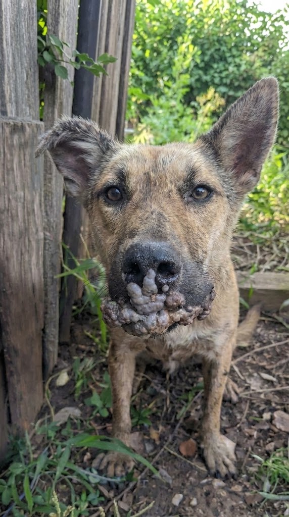 But Nossa’s suffering was visible in a way that made her life a living nightmare. She was plagued by painful, aggressive lumps covering her mouth—the result of a severe Papillomavirus infection. These growths weren’t just unsightly; they were a barrier between her and survival. Every attempt to eat or drink became a struggle against immense discomfort, until finally, her life on the streets came to a complete standstill.