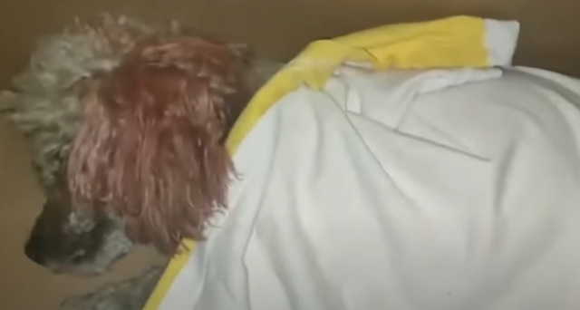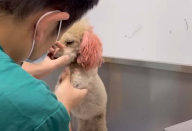 When the rescue team arrived, they found a senior dog—at least 10 years old. In the dim light, one detail stood out that made the situation even more tragic: his ears were dyed pink. This wasn’t a stray that had spent its life on the streets. This was a pet. He had been groomed, his fur shaved recently, and his ears colored by someone who once cared for his appearance. Yet, here he was, broken and shivering on the cold pavement, with no owner in sight.