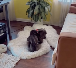 When she finally allowed her legs to buckle and lay down, an uncontrollable trembling took over her body. This wasn’t just physical weakness—it was the total surrender of a creature who had reached the end of her own ability to survive. She made a soft, hesitant sound, a tiny whimper of vulnerability, as if she feared that being noticed might lead to more pain. But instead of a threat, she was met with a bowl of water, offered by hands that moved with a gentleness she didn’t yet understand.