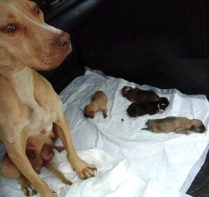 Because of the “aggressive” label attached to her breed, locals were too frightened to approach her. They watched from a distance, unaware that beneath the tough exterior of a Pitbull was a mother whose body was shutting down, yet whose spirit was fighting for four new souls.