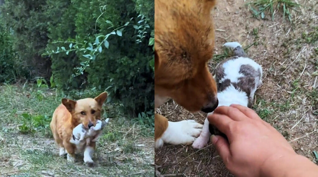 Once we arrived at my house, I prepared a warm, nutritious meal for her. I expected her to bolt it down, but she hesitated. Instead of eating, she took a large piece of food in her mouth and walked toward me, looking at me with a pitiful, pleading gaze.