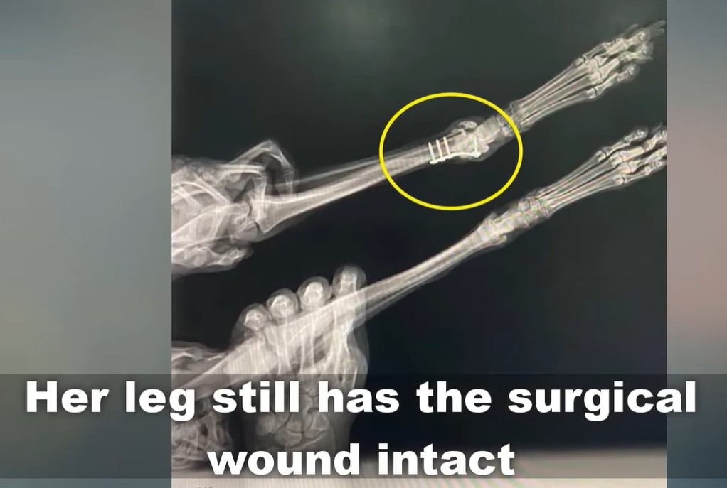 At the vet, the X-rays revealed a shocking truth. Her leg was still wrapped in an old surgical cast. A previous surgery had gone wrong. Her owners didn’t want a “broken” dog.