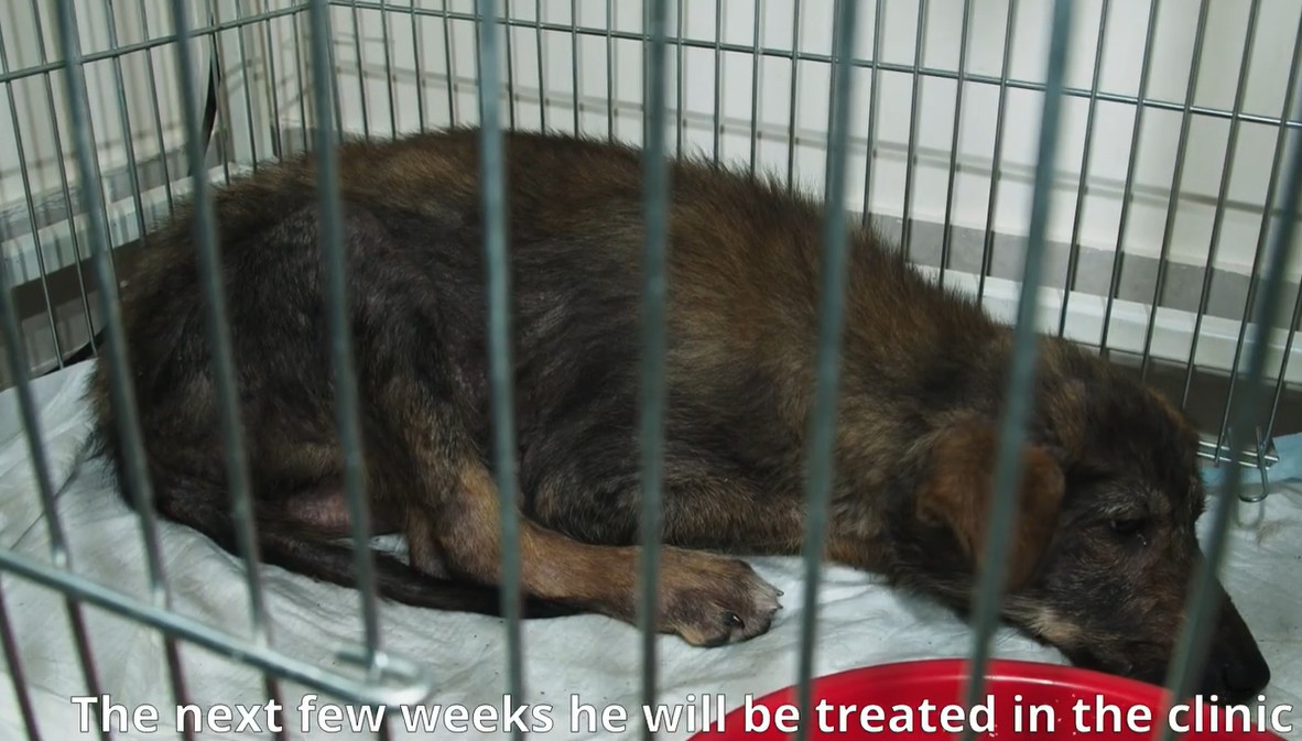 At the hospital, the team learned that this little survivor was only about 4 to 5 months old. He was diagnosed with a severe case of Demodex mange, a painful skin condition that had robbed him of his fur and his dignity.