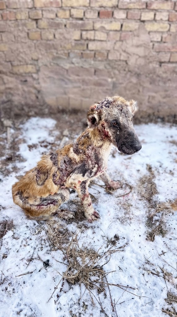 His face was etched with a fatigue that no amount of sleep could cure. For at least six months, he had been suffering from severe, acute dermatitis. His skin was rough, scaly, and cracked, with infected wounds that told a story of prolonged neglect. He was also severely malnourished, his body a frail frame of what a dog should be.