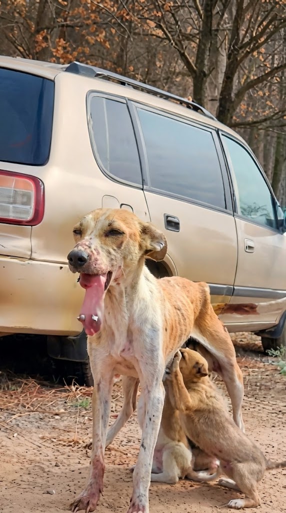 Pinky had spent most of her existence weathering the elements. her fur was a matted map of her struggles, bleached by the sun and tangled with the grit of the streets. Her frame was painfully thin, a clear sign of the exhaustion that comes from being a mother in a world that offers no safety net. But despite the hunger that gnawed at her, Pinky never wavered in her duties. Every single day, she walked the same exhausting routes, searching for even the smallest morsel of food to sustain herself so she could keep her nursing puppies alive. Her life was a relentless cycle of sacrifice.