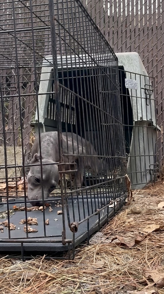 Eventually, the third pup, Baloo, made her way to a nearby home and curled up in a crate, refusing to come out. She was starving, mutilated, and completely broken.