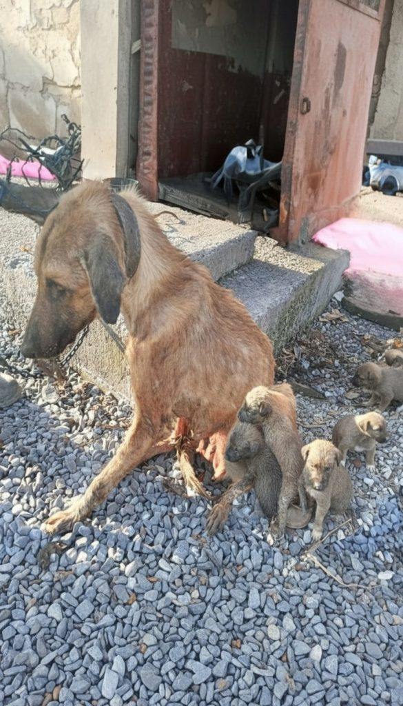 She was a ghost of a creature—skeletal, her fur matted with the dust of the shelter, her breathing shallow and labored. But beneath her, tucked into the hollow of her chest, was a cluster of newborn puppies. They were tiny, fragile, and entirely unaware that the source of their warmth was fading. The mother’s eyes were the only part of her that still moved with vigor; they were sharp, watchful, and filled with a fierce, terminal determination. She was running on a battery that was almost empty, yet she refused to let the light go out until her mission was complete.