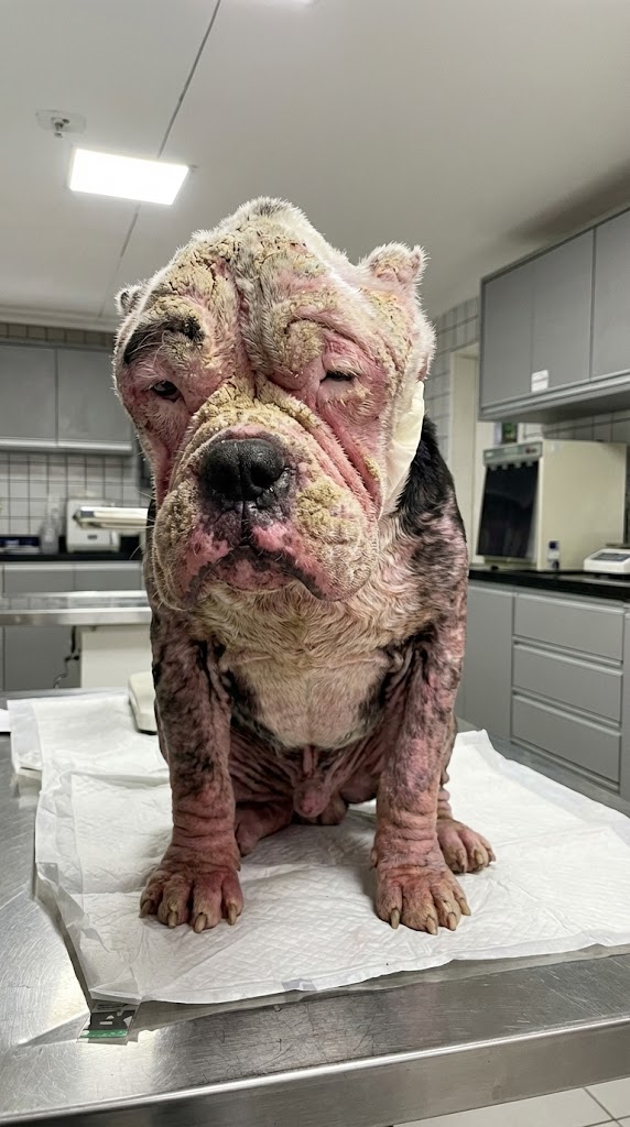 The pain was visible in every part of his being. His eyes were clouded with thick mucus, and his skin was raw and angry from a severe case of mange. When we brought him food, the way he ate—desperate and grateful—made it impossible to keep a dry eye.