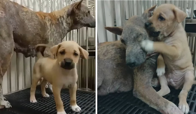 On the desolate fringes of a quiet town, in a place where the shadows seem to swallow the most vulnerable, a mother dog was fighting a battle no living soul should ever have to endure. She had chosen a patch of cold, hard ground to be her family’s sanctuary—a place far from the eyes of a world that had seemingly forgotten she even existed. Her body was a heartbreaking map of months of neglect; she was painfully thin, her ribs visible through matted fur, and her spirit was weary. Yet, even in this state, she remained a fortress. She stayed pressed firmly to the frozen earth, using her own fading body heat to shield her newborn puppies from a world that had offered them nothing but indifference.