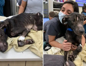 He was “skin and bone” in the most literal sense. Every rib was visible, his spine stood out like a mountain range, and his eyes were sunken from exhaustion. Yet, to everyone’s shock, when they placed him on the floor, he didn’t collapse. He stood up. He took a few shaky steps.