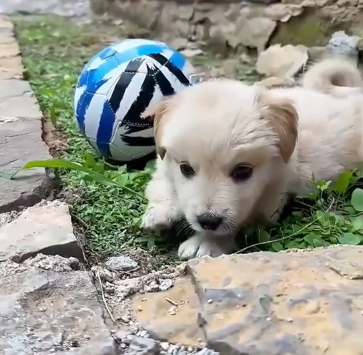 The puppy was told to rest and avoid stress before his vaccinations. To help with his anxiety, the uncle bought him a ball—a toy that was actually bigger than the puppy itself. Yet, the little guy had a magnificent time, rolling with the ball and realizing that life could be about play, not just survival. He was no longer a “stray”; he was a popular member of the neighborhood, attracting smiles and pets from everyone he met.