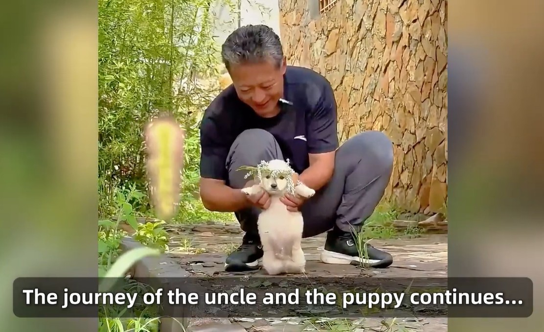 Today, the puppy follows the uncle closely, going wherever he goes, never wanting to leave his side. In the small park nearby, he has become the favorite companion of the local children, posing for pictures and sharing his boundless joy.