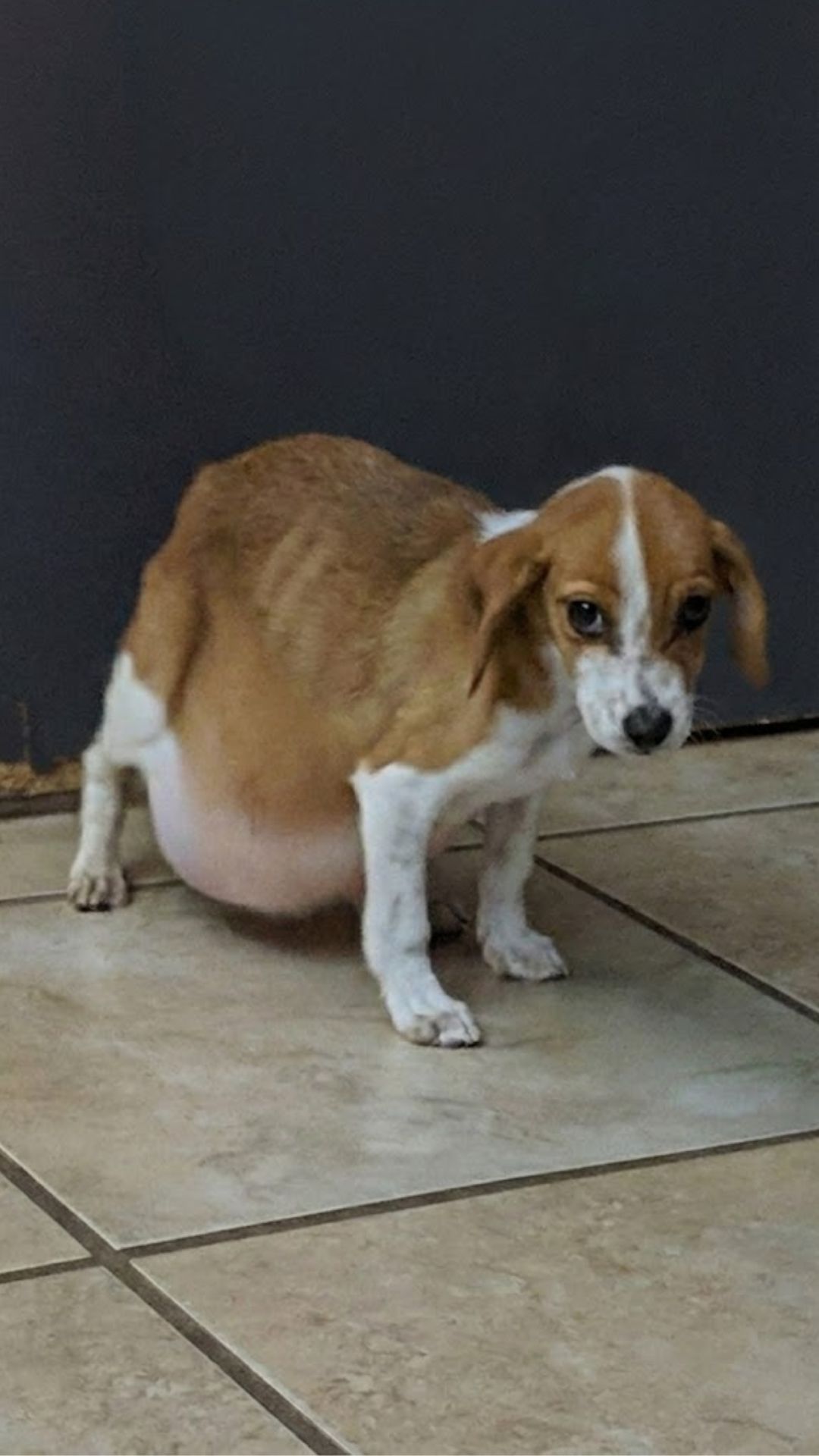 She was a tiny Beagle, barely the size of a shoe. But her stomach was the size of a basketball.