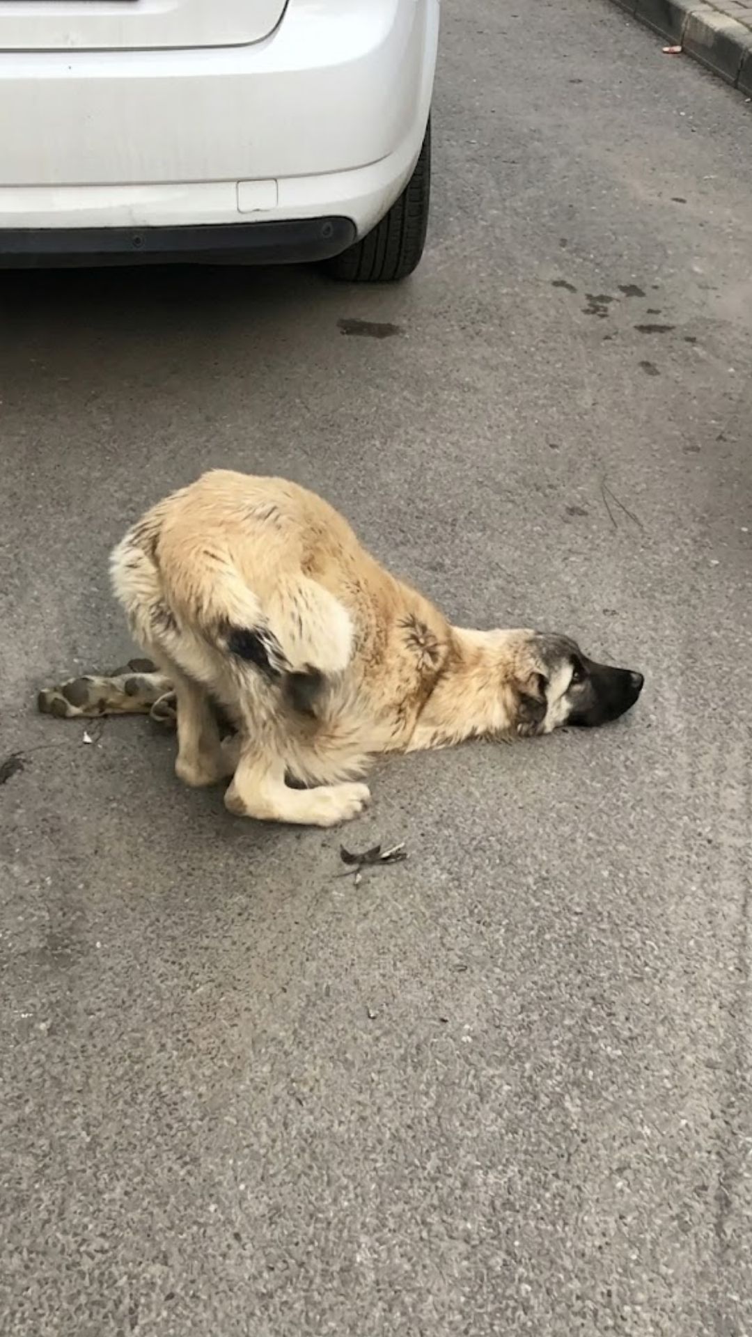 But then, a girl stopped. She didn’t just look; she stayed. She took a leave from work, sat in the dirt with him for three hours, and bought him his first real meal. When she finally touched him, the giant, broken dog did something that broke her heart: He cried.