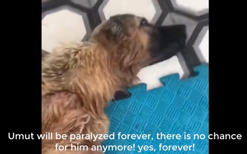 The vet’s conclusion was devastating: “Umut will be paralyzed forever. There is no chance for him to walk on his own again.”