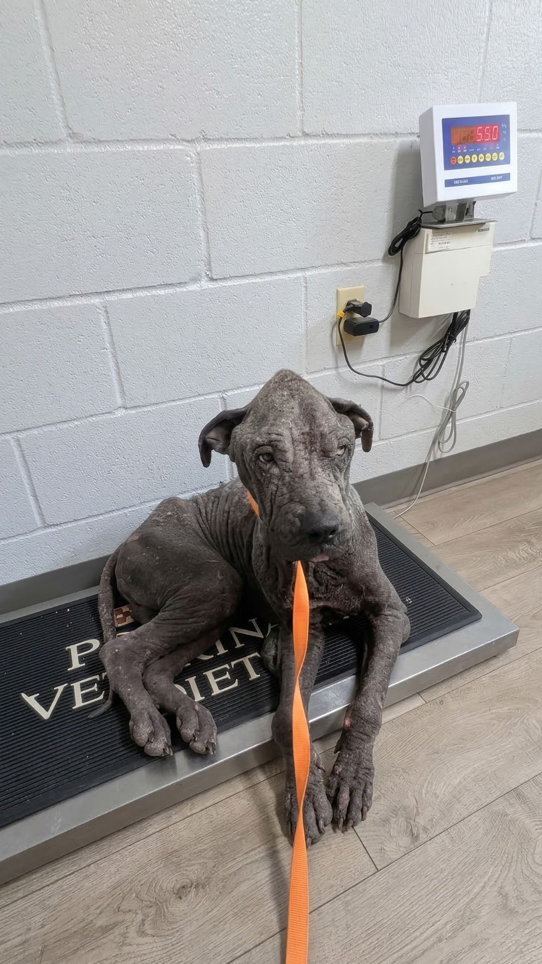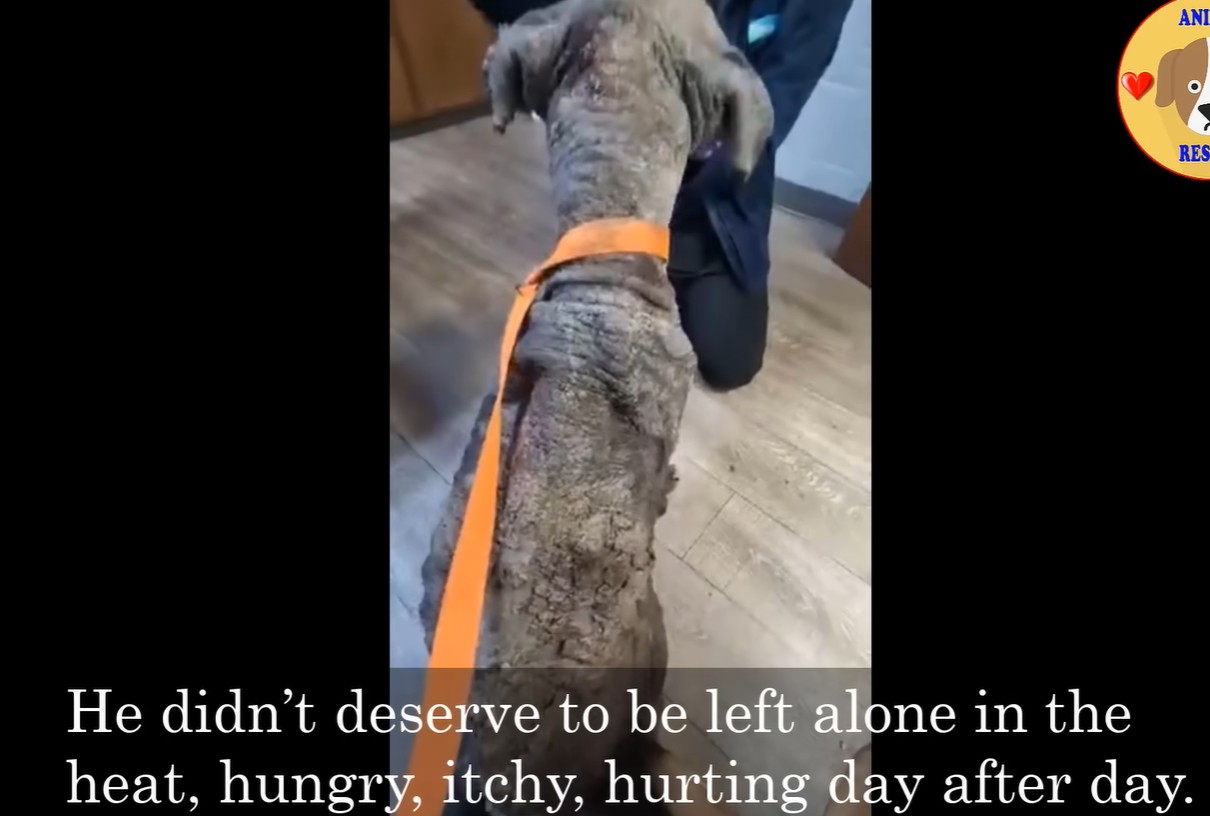 His ribs pressed sharply against his fragile frame. His skin was raw, irritated, and stripped of its fur from a severe, relentless condition. But it wasn’t his physical state that brought his rescuer to tears on the entire drive home.