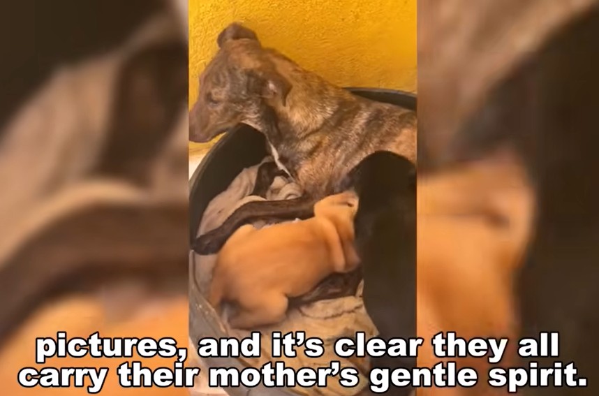 By Week 4, she began to let the other dogs sniff her puppies. She was calmer. Her fur was beginning to shine again. The haunting look of starvation was replaced by the softness of a mother who knows her children are fed.