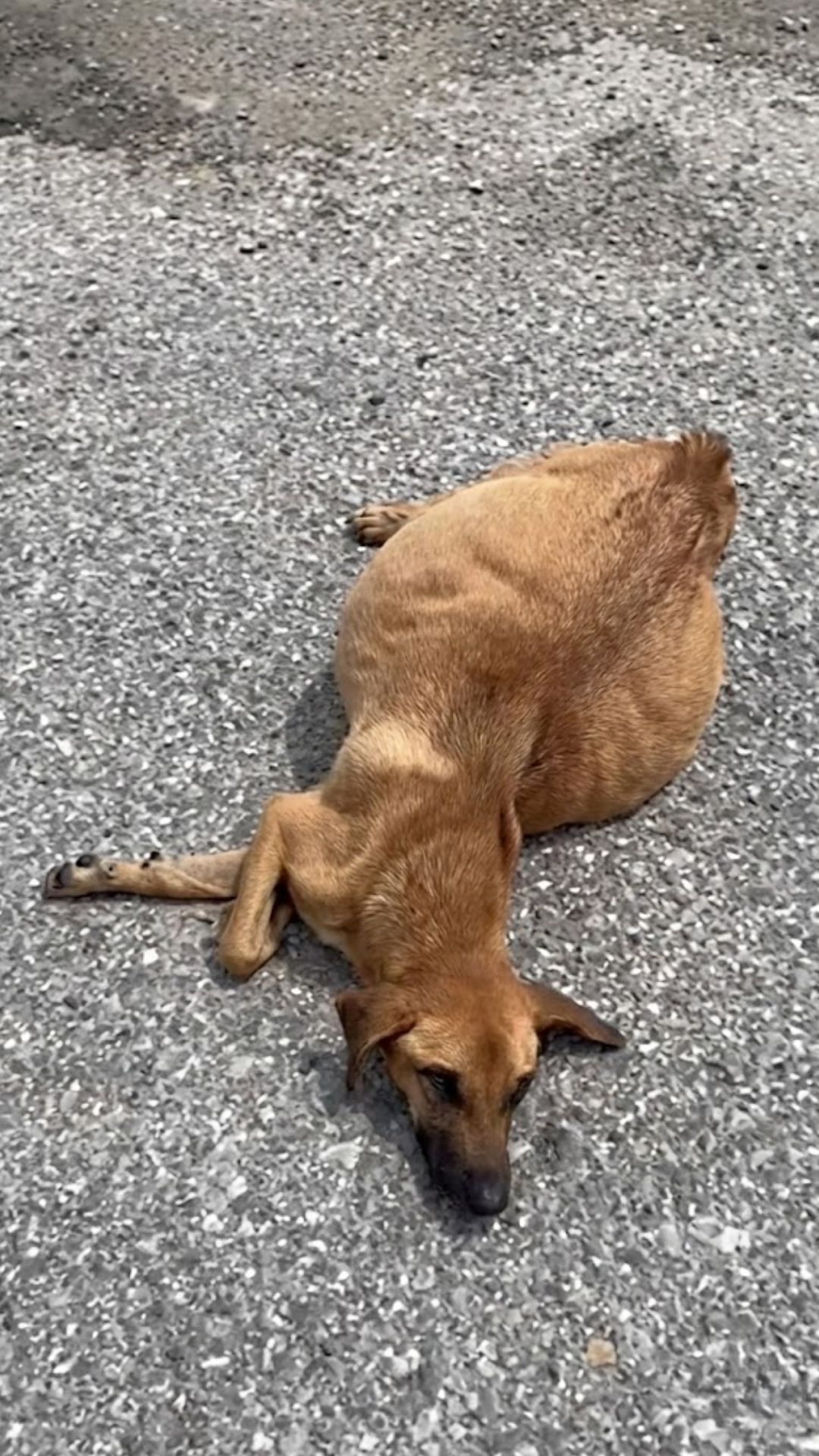 A security guard nearby watched the tragedy unfold. He saw her distended stomach and the way she struggled to move. He grabbed his phone and called for help, his voice urgent: “Please come quickly. Someone just dumped a pregnant dog. She’s collapsing.”