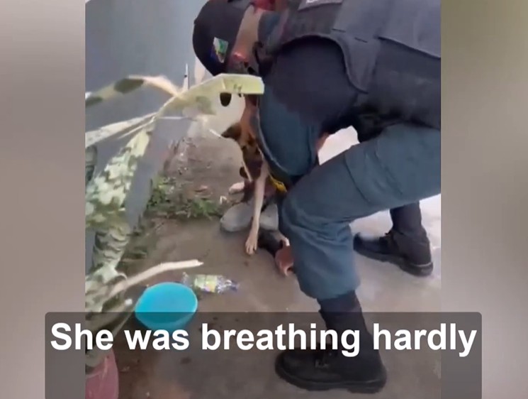 The Military Police were immediately called to the heartbreaking scene. They quickly and carefully sliced the rubber tape off her nose, finally allowing her to take a deep, unobstructed breath before rushing her into the arms of a local rescue team.