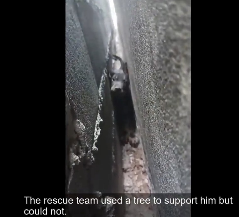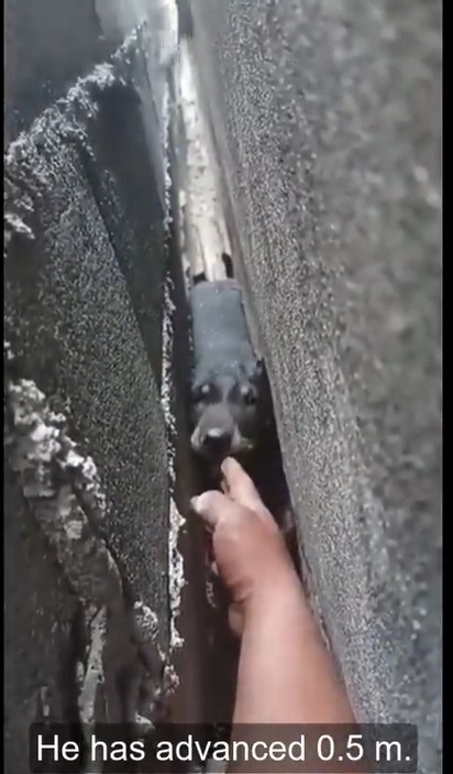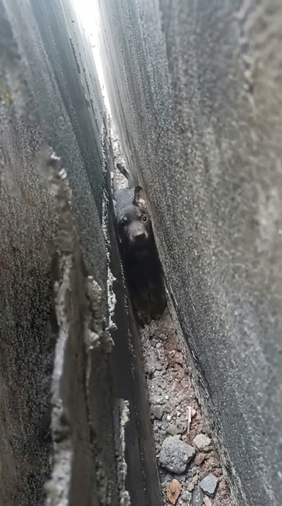 In a freak accident, the small, ownerless pup slipped and fell into a razor-thin gap between two towering walls. It was a space so narrow that he couldn’t even turn his head. He was paralyzed by the cold concrete, squeezed tighter with every desperate breath he took.