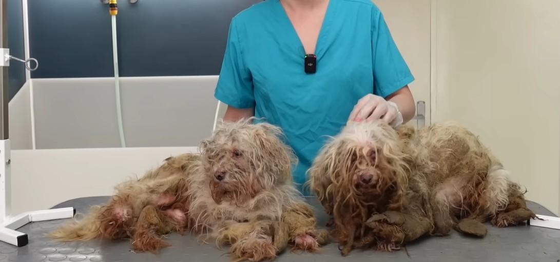 When the two deeply neglected dogs, later named Mickey and Minnie, arrived at the salon, the groomer was rendered completely speechless.