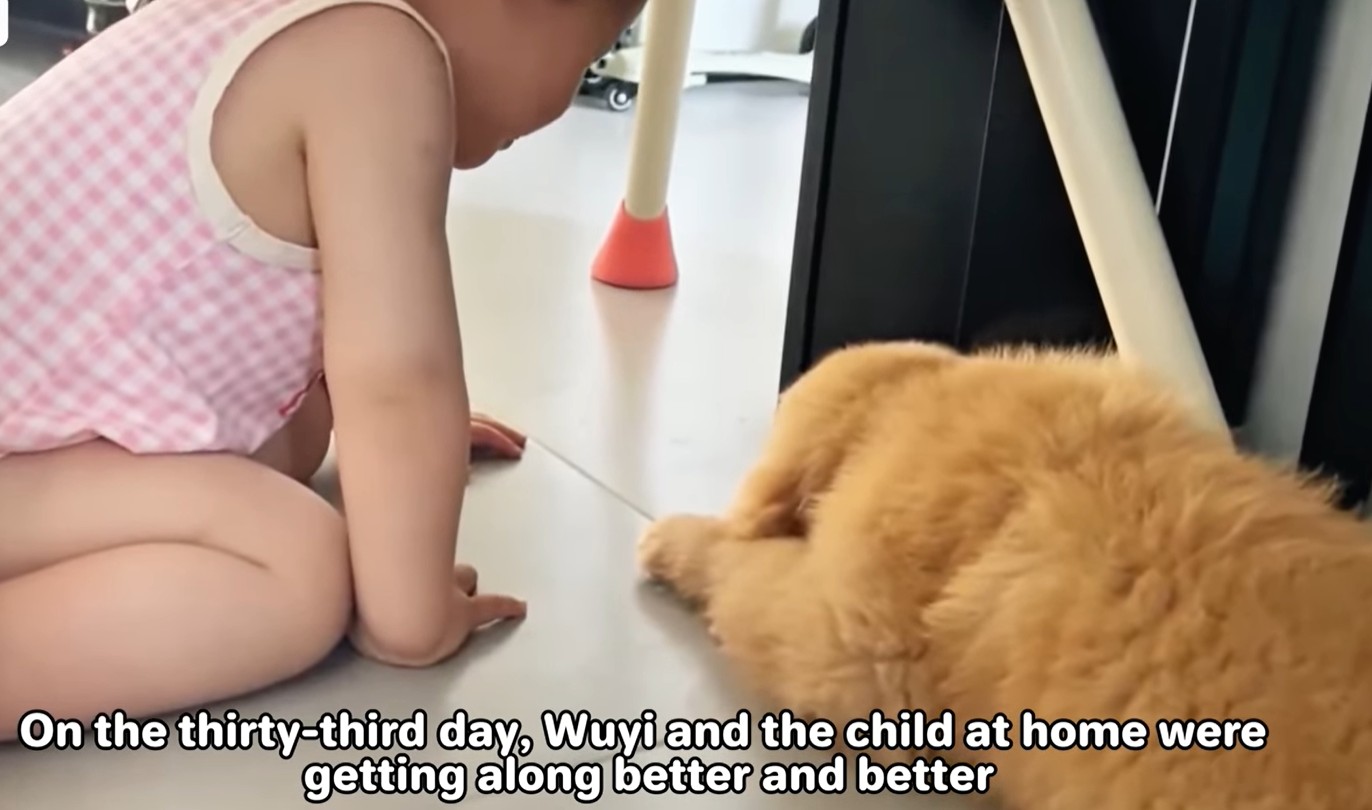 He watched our child from his new bed, his tail wagging constantly like a metronome of happiness. When the child played, Wuyi watched with gentle eyes. When the child got too close, Wuyi didn’t snap; he simply moved under the table if he needed space, setting boundaries with a maturity that surprised us.