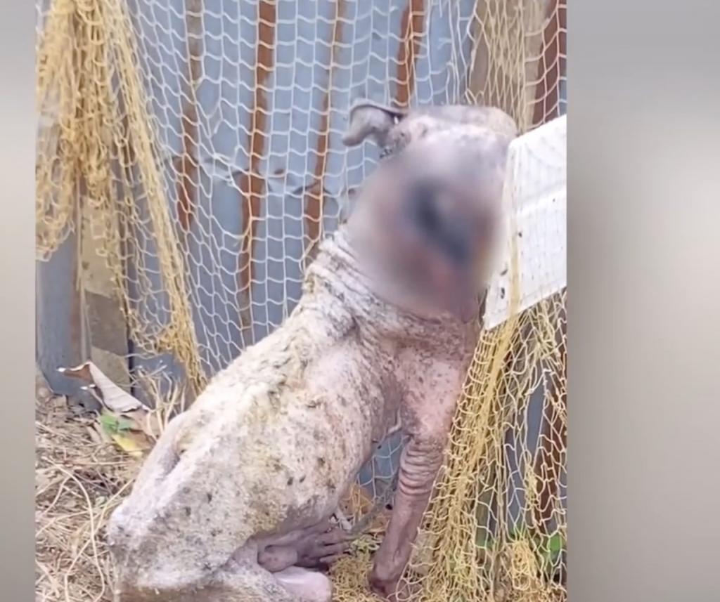 The man crouched down and spoke gently. The dog’s tail moved once, slow and uncertain, as if testing whether trust was still allowed. Seeing the rope tied tightly around a nearby post, the man didn’t hesitate. He freed the dog, wrapped him in a clean cloth, and carried him away from the empty land.