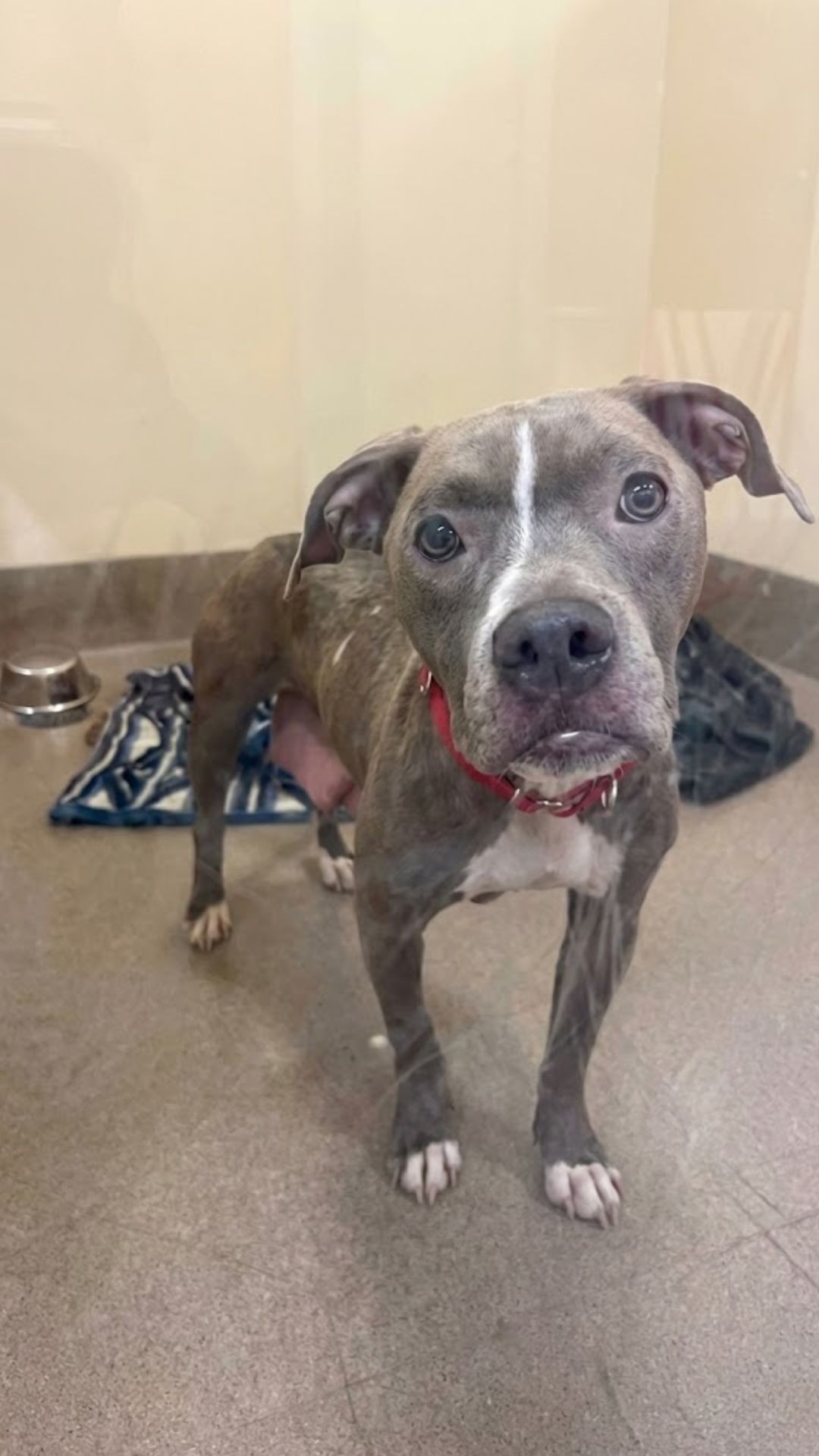 Binny was immediately rushed to the Everett Animal Shelter (EAS), where the true extent of her suffering was revealed. She was in a critical state, throwing up blood and suffering from deep abrasions around her neck where the ropes had dug into her skin.